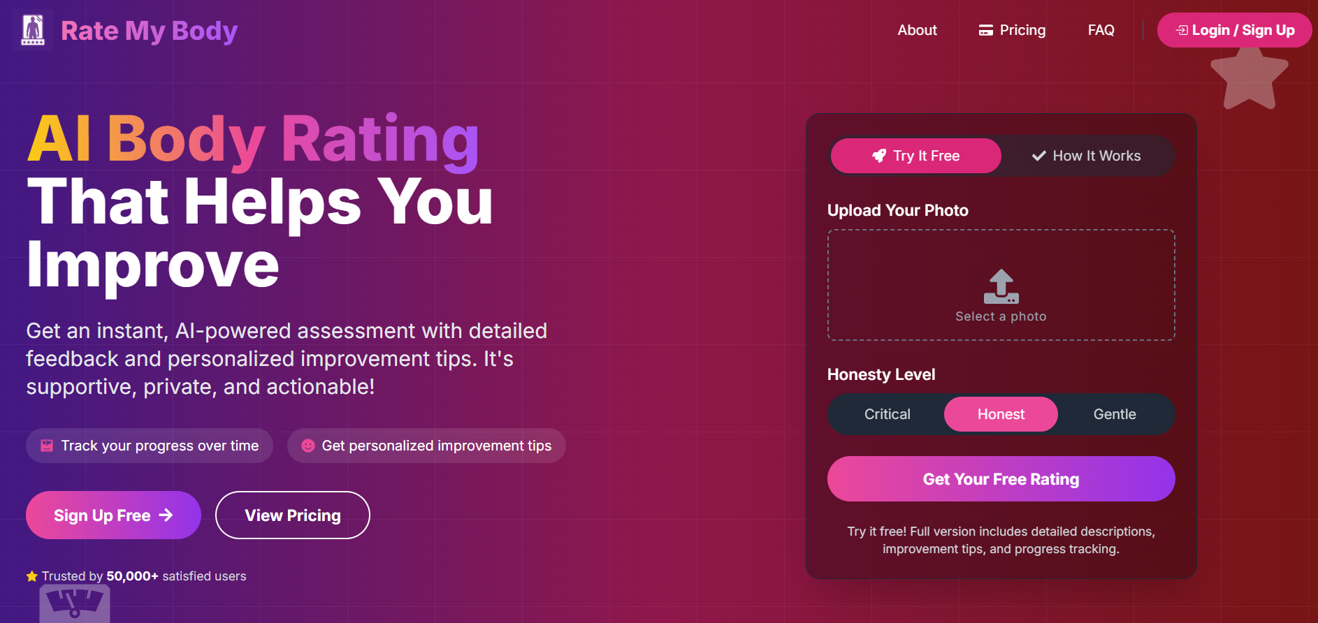 Rate Body offers AI-driven body assessments based on user-uploaded photos, providing instant feedback, numerical scores, tailored recommendations, and progress tracking to support fitness journeys focused on aesthetics and health indicators.