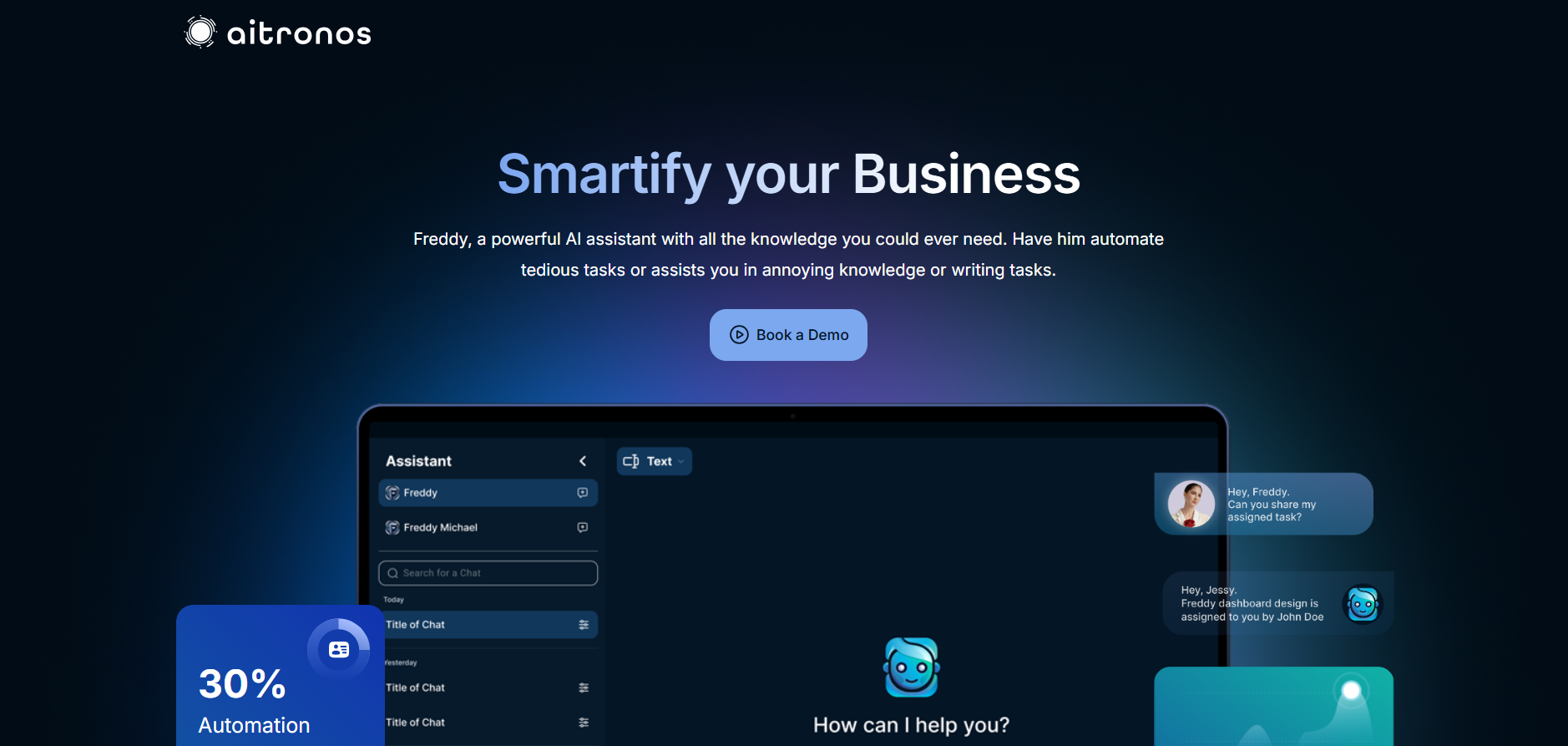 Aitronos’ assistant, Freddy, is an AI that helps businesses “smartify” operations by automating repetitive or tedious tasks, such as document drafting, email writing, or report creation.