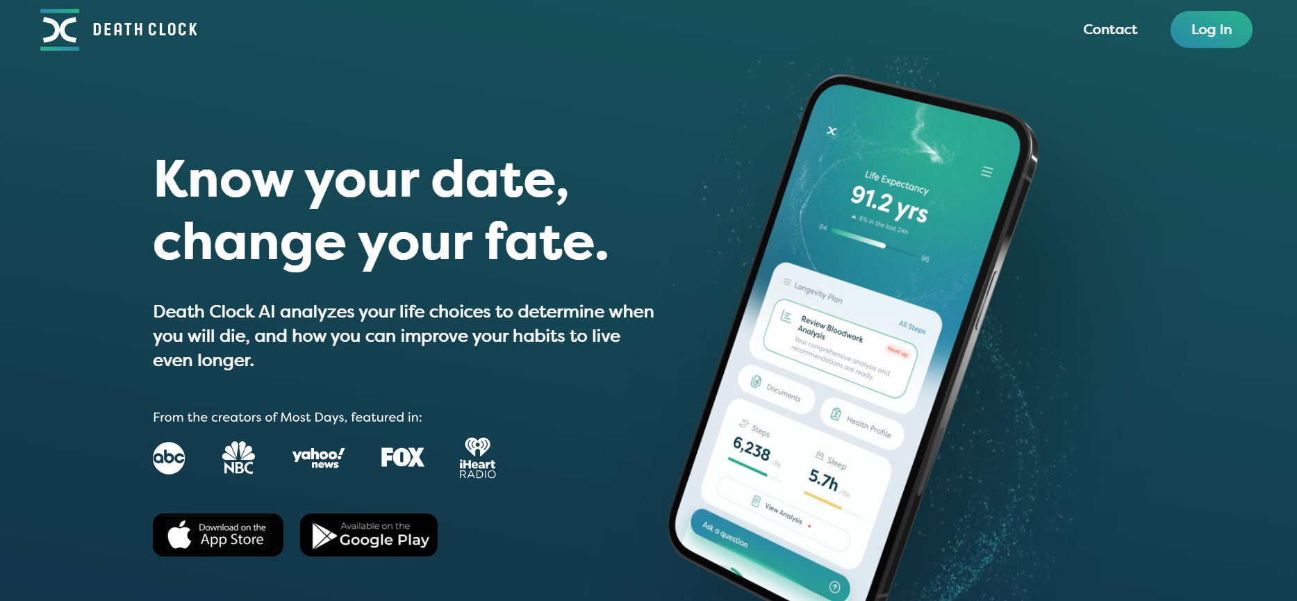 Death clock AI Death Clock analyzes life choices to predict lifespan and offers tailored recommendations for healthier living based on CDC data. It provides insights to improve lifestyle habits, facilitating informed decisions for enhanced longevity and wellness. Read More