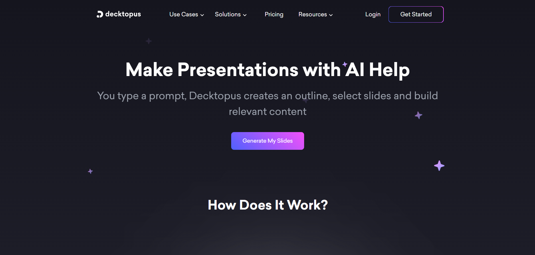 Decktopus is an AI-powered presentation maker that helps users quickly generate professional slide decks. It provides ready-to-use templates, smart content suggestions, and design automation, making it ideal for business pitches, lectures, and reports.