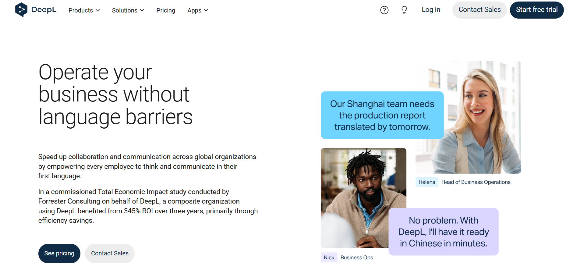 The DeepL AI-powered translation solutions tailored for enterprise teams, enabling seamless multilingual communication across departments and global markets. Its purpose is to enhance operational efficiency and collaboration by integrating high-quality translations into workflows, documents, and customer interactions.