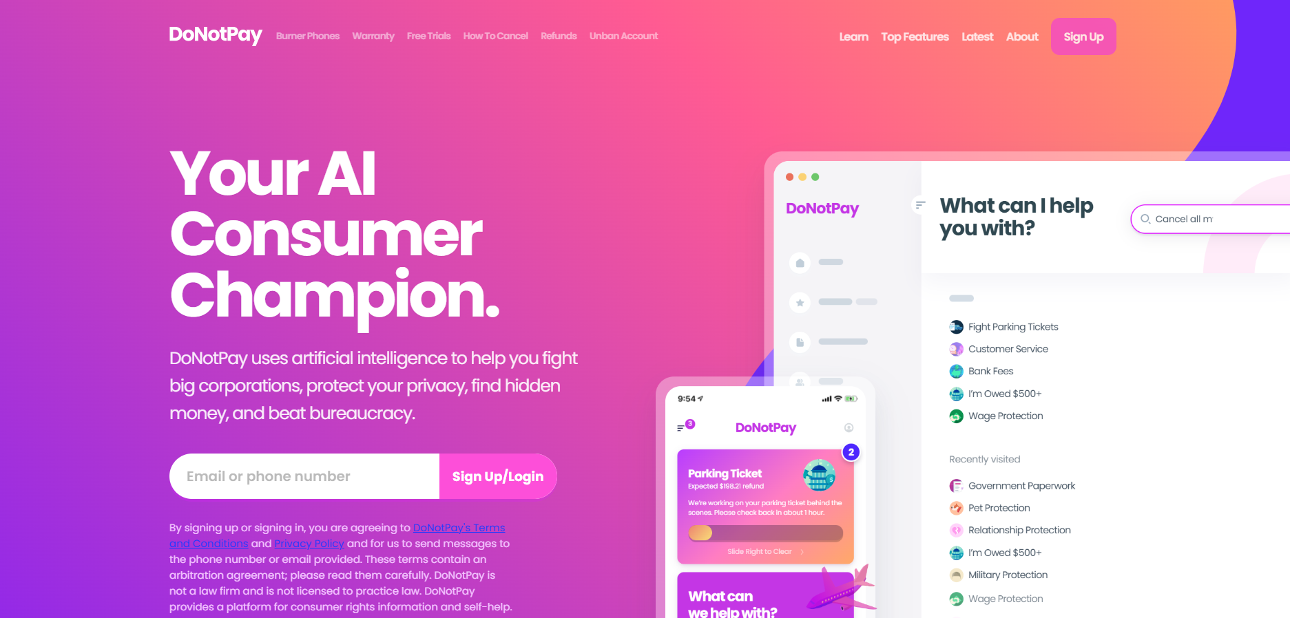 AI-powered consumer rights platform that helps users fight corporations, beat bureaucracy, and resolve everyday legal and financial issues from disputing parking tickets to canceling subscriptions. Its purpose is to empower individuals with automated, self-help legal tools that make justice more accessible, affordable, and efficient across a wide range of personal challenges