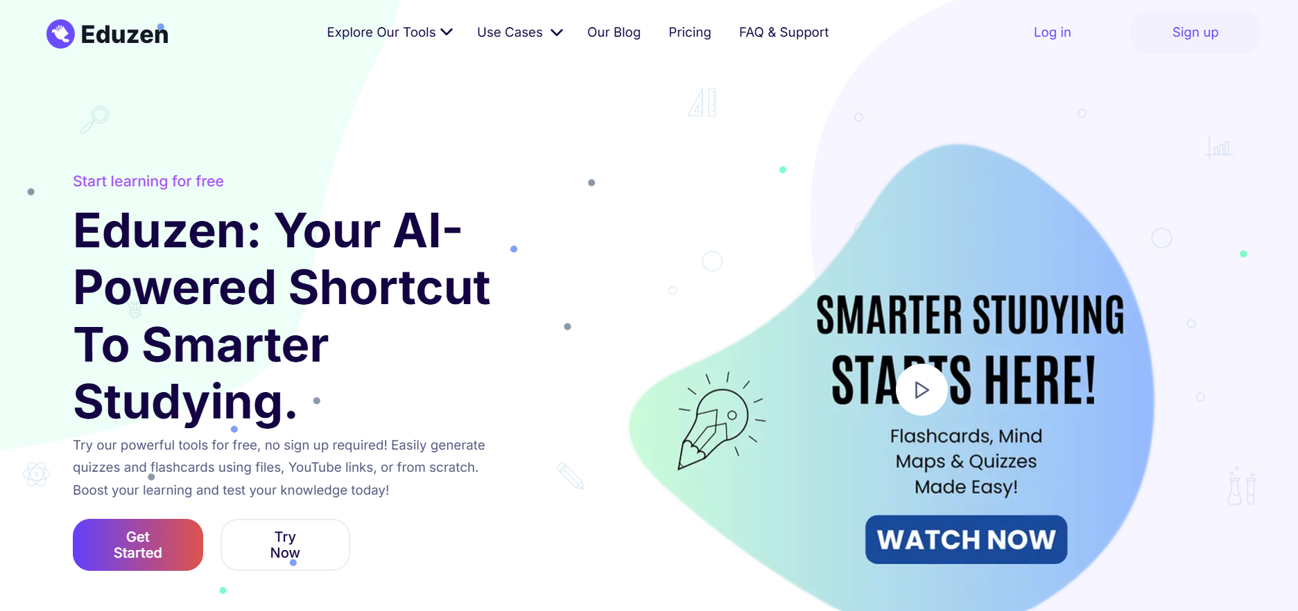 Eduzen Eduzen is an AI platform that enhances study efficiency with tools like a flashcard generator, quiz creator, lecture recorder, and mind map generator, enabling personalized learning and effective revision across various content formats. Read More