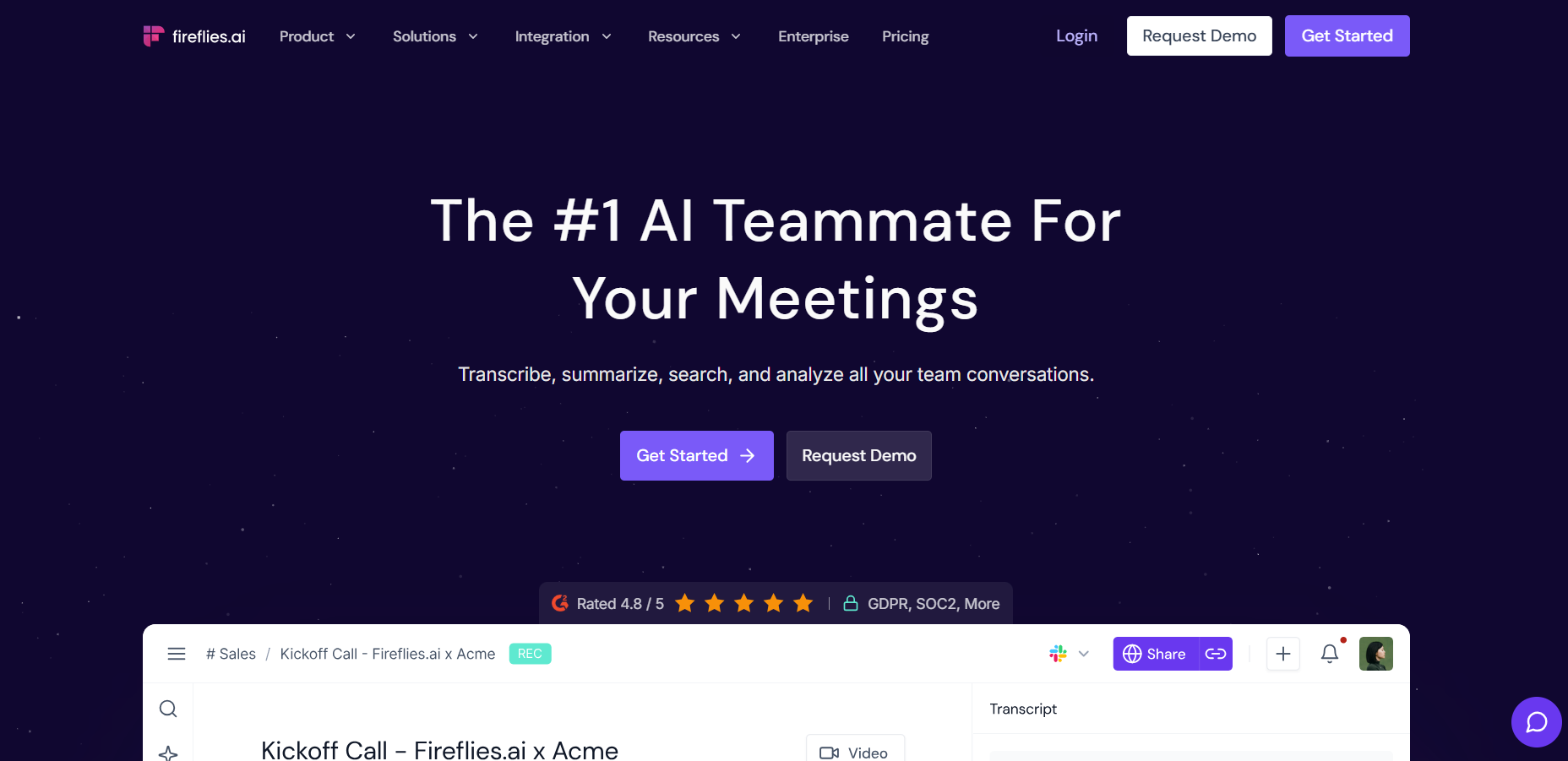 Fireflies.ai is an AI-powered meeting assistant that automatically records, transcribes, and summarizes conversations across platforms like Zoom, Google Meet, and Microsoft Teams. Its core purpose is to eliminate manual note-taking, streamline meeting workflows, and enhance team productivity through searchable insights and actionable summaries. Designed for professionals and teams, it ensures that no detail is lost and every meeting becomes a source of structured knowledge.