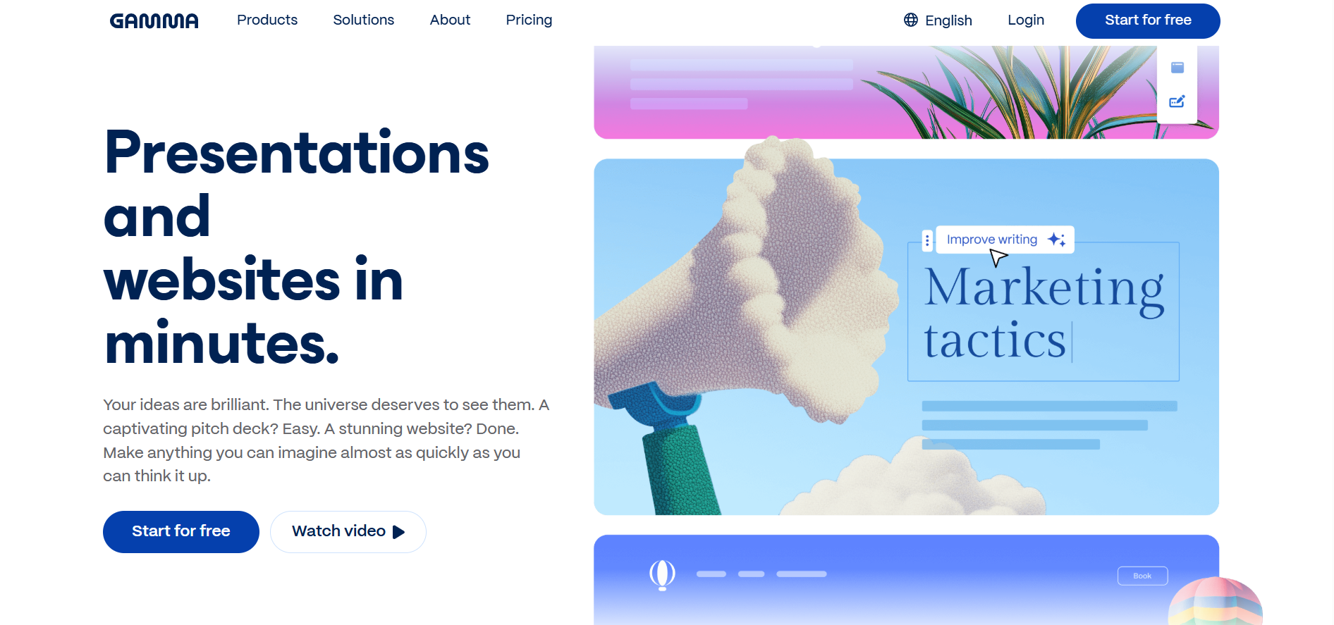 Gamma AI Gamma AI is a modern presentation and document creation platform that uses AI to simplify storytelling. It allows users to create decks, documents, and webpages with minimal effort, focusing on clarity, interactivity, and design aesthetics. Read More