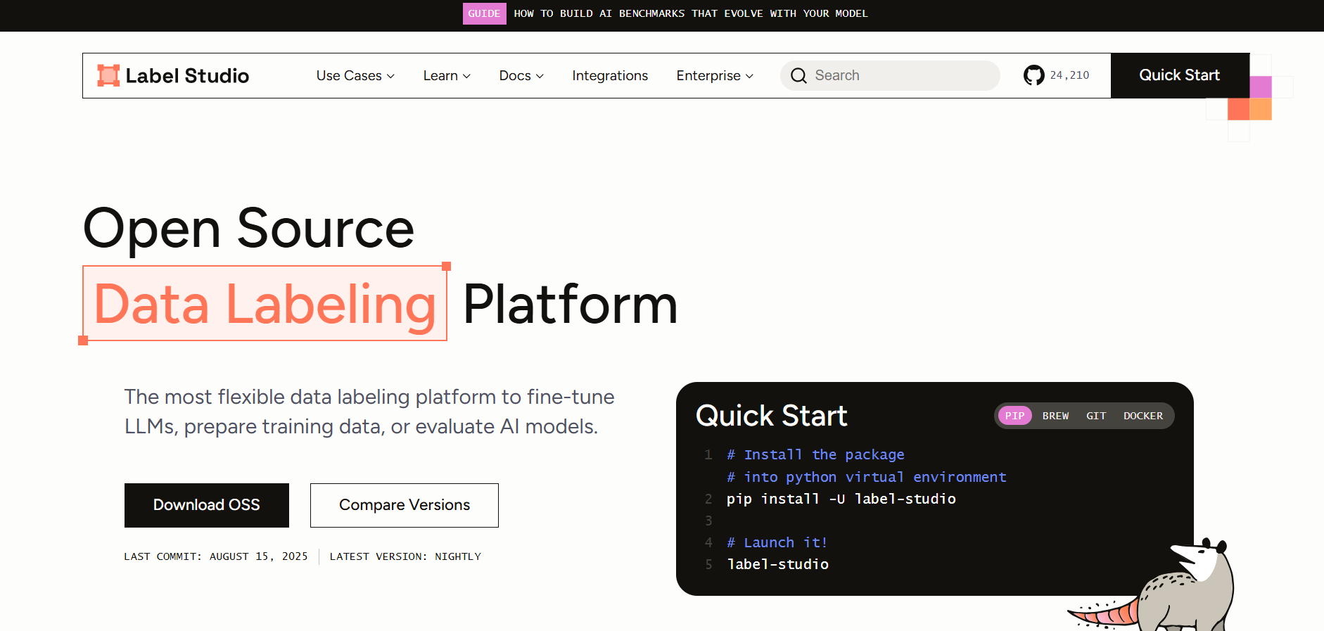 Open-source data labelling platform that supports a wide range of data types including text, images, audio, video, and time series, offering flexible configurations for diverse machine learning workflows. Its purpose is to streamline the annotation process for AI development by enabling teams to fine-tune models, validate outputs, and manage labelling projects with customizable templates and integrations