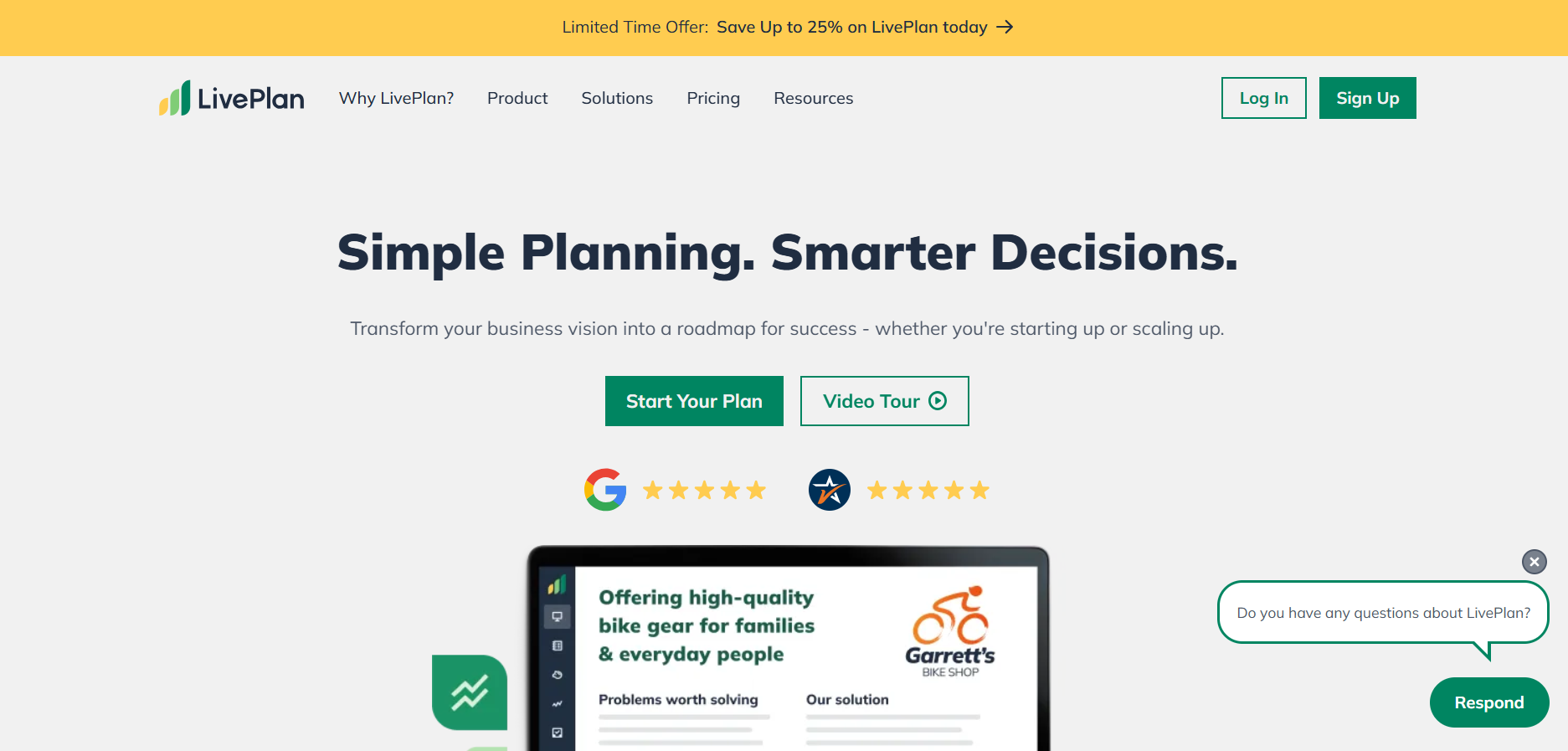 LivePlan is a business plan software that helps entrepreneurs create detailed plans with AI assistance, offering sample plans, financial forecasting, and integration with accounting software for effective strategy formulation and performance tracking.