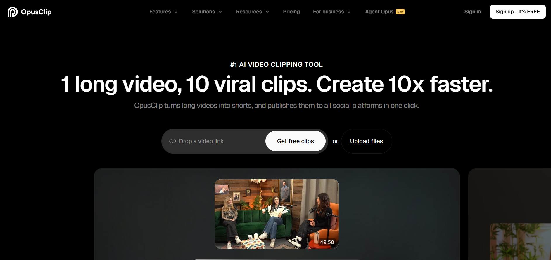 Opus is a generative AI platform that helps users turn ideas into creative media, particularly short-form videos. It automatically analyzes long content, extracts key moments, and packages them into viral-ready clips. Marketers and creators use it to boost audience engagement without heavy manual editing.
