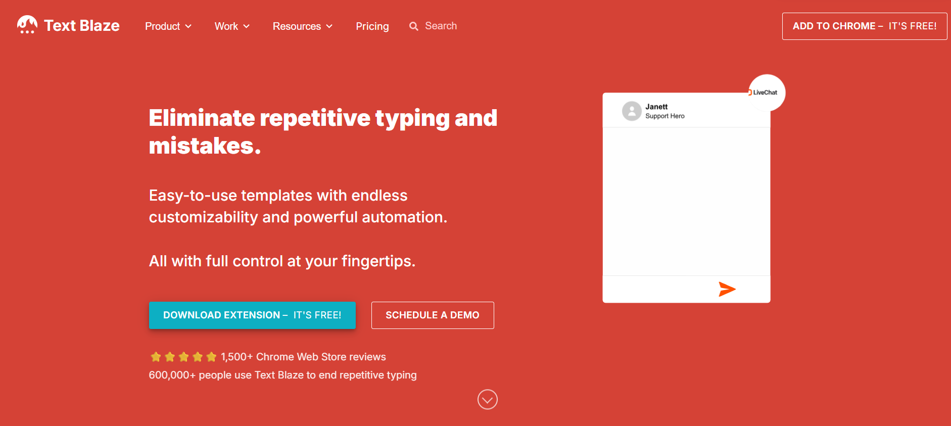Text Blaze is a text expansion and automation tool that speeds up repetitive typing tasks. Users can create customizable text snippets, templates, and shortcuts for emails, customer support replies, or internal communications. Its simplicity and integration with web apps make it especially useful for productivity and workflow efficiency.