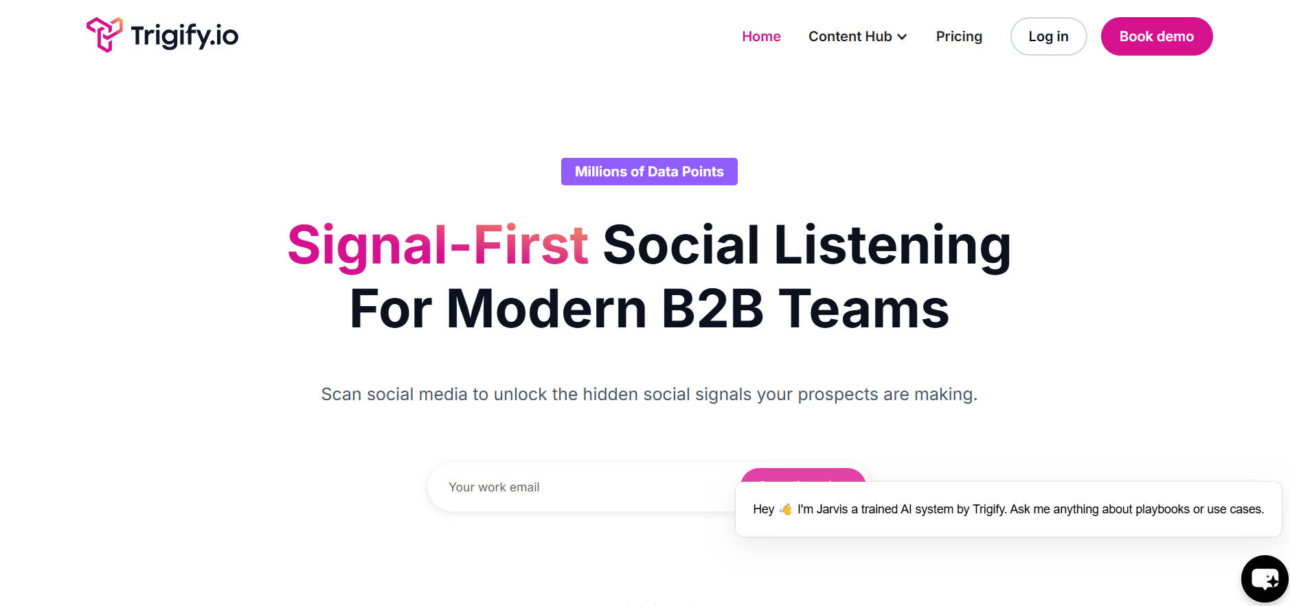 Trigify is a social intelligence platform that transforms real-time social media engagement into actionable sales and marketing opportunities. Its purpose is to help B2B teams discover high-intent leads by tracking profile interactions, keyword engagement, and competitor signals across platforms—enabling hyper-targeted outreach and smarter decision-making