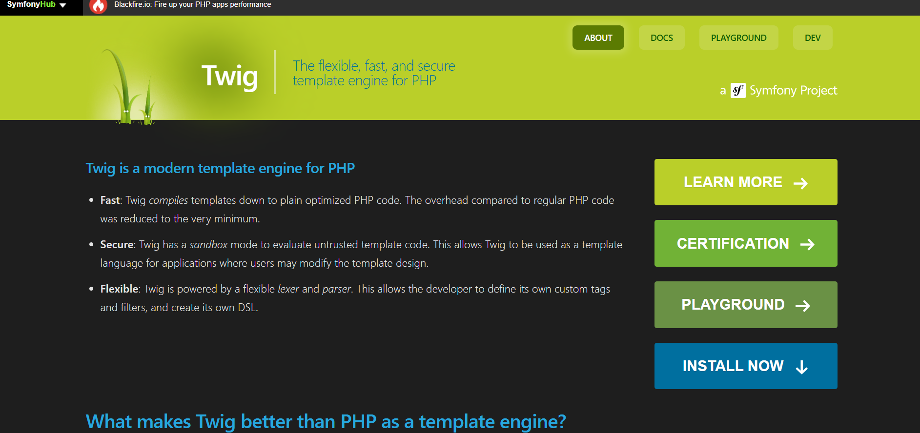 Modern, fast, and secure PHP templating engine designed to simplify the creation of dynamic web pages by separating presentation logic from business logic. Its purpose is to empower developers and designers with a concise, extensible syntax that enhances maintainability, readability, and performance within Symfony and other PHP-based frameworks