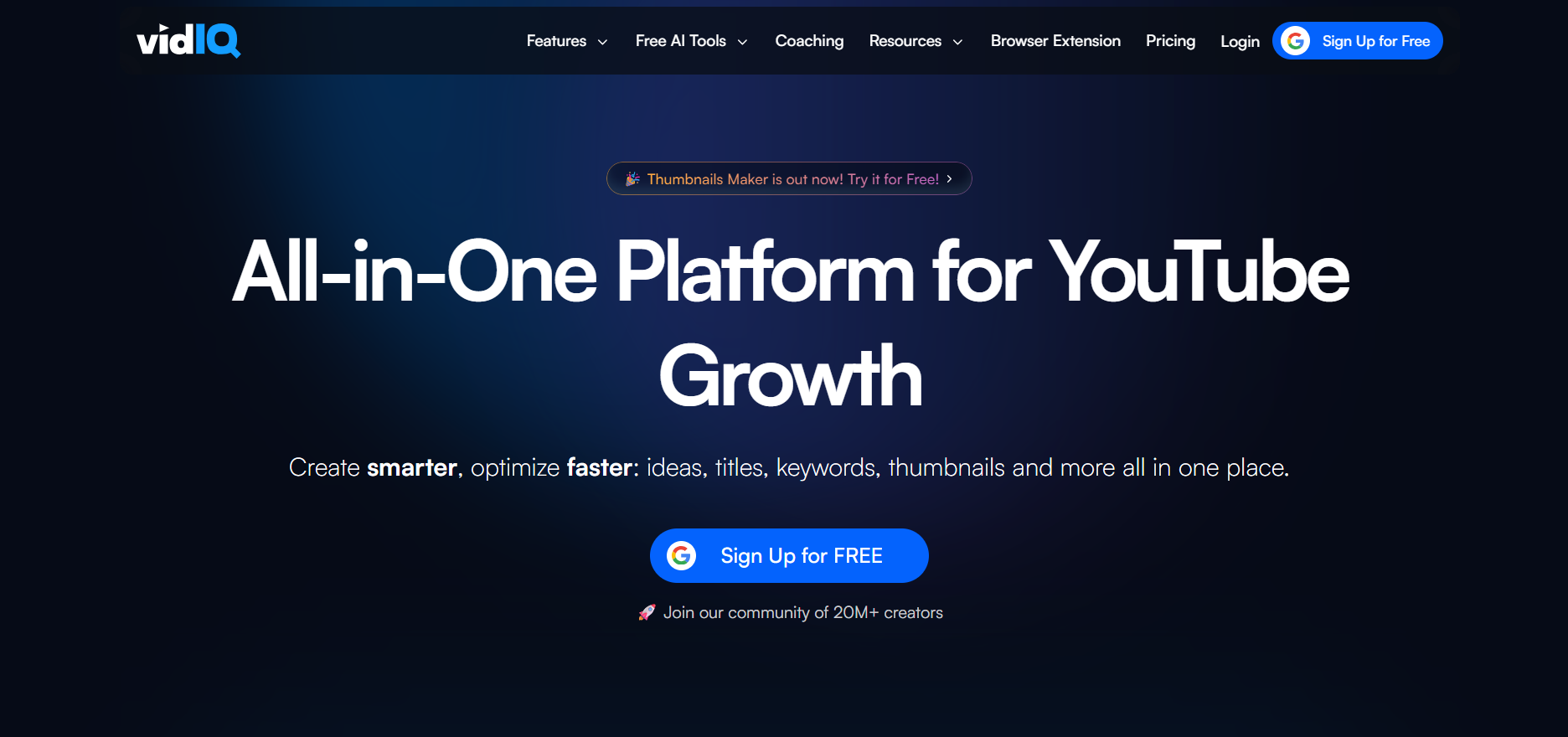 VidIQ is an AI-powered platform designed to help YouTube creators optimize their videos for maximum reach and engagement. It provides tools for keyword research, SEO analysis, trend tracking, and analytics, helping creators grow their channels efficiently.