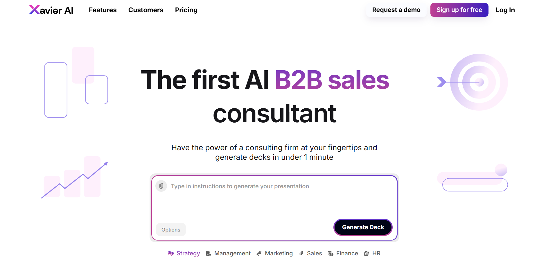 Xavier AI Xavier AI is an AI strategy consultant that generates professional presentation decks in under a minute, supporting 50+ languages. It offers customizable pitch decks, business plans, and real-time insights with seamless document import. Read More